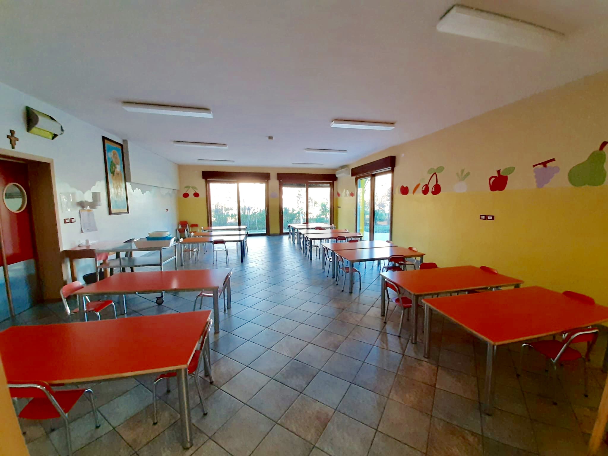 Nella scuola è in funzione una moderna e ampia cucina attrezzata che garantisce un servizio mensa interno, il cui menù, suddiviso in cinque settimane, proposto e aggiornato con la consulenza della dietista Dott.ssa Elena Aprile, è stato convalidato dall'Azienda Sanitaria Locale. La dieta proposta è studiata con particolare attenzione alla qualità, varietà e stagionalità dei prodotti del territorio. E’ stata, inoltre, introdotta pasta integrale e biologica, oltre elementi di novità quali l’aumento di consumo di legumi e cereali.