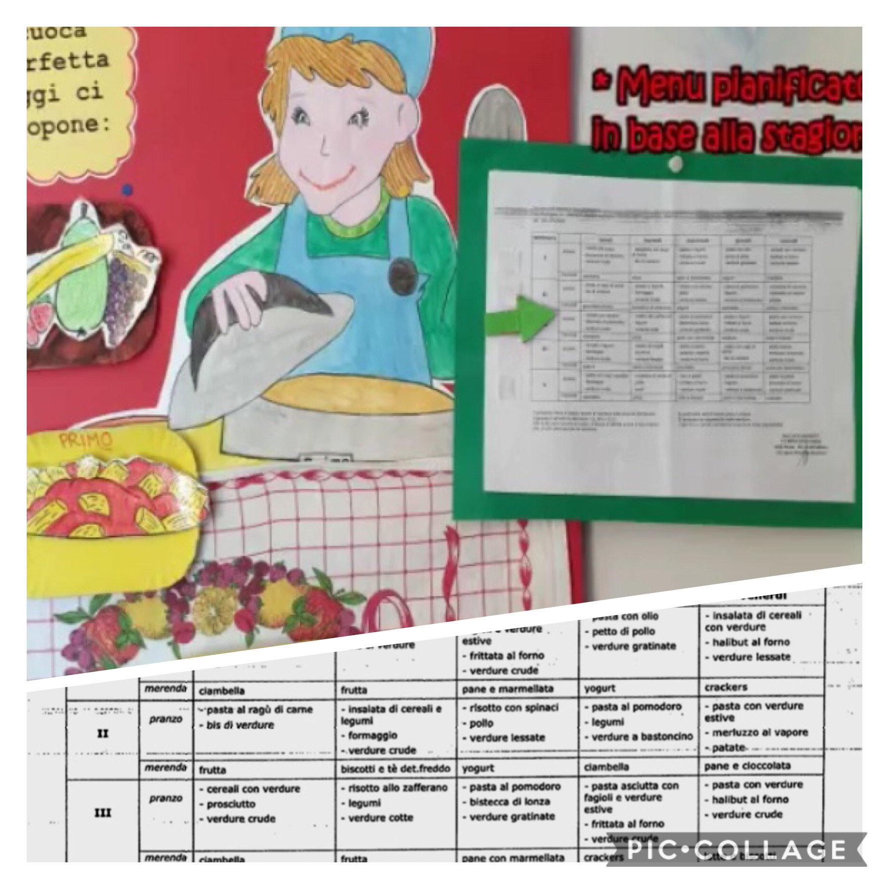 Ai bambini vengono quotidianamente offerti frutta fresca di stagione per lo spuntino mattutino e frequentemente, prodotti da forno di produzione propria come ciambelle, crostate e gnocco per la merenda pomeridiana.